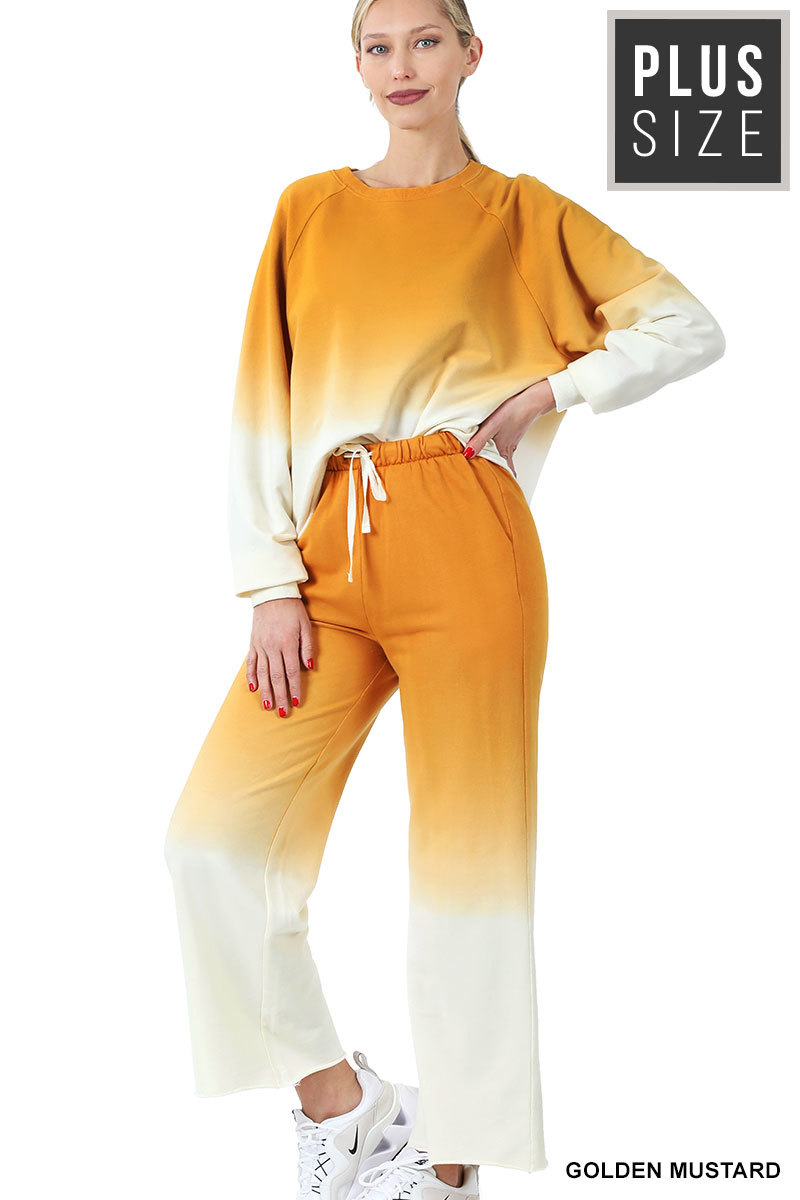 PLUS FRENCH TERRY DIP DYE RAGLAN SLEEVE TOP & LOUNGE PANTS SET